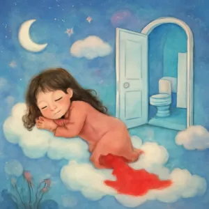 화장실은 개인적인 프라이버시, 정화, 혹은 스트레스 해소와 연결되어 있으며, 생리라는 상징은 여성의 생명력, 감정 변화, 그리고 본능적인 자기 보호를 의미할 수 있습니다.