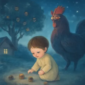 내면의 안전한 공간(산 아래 집)에서 새로운 가능성(작은 밤알)을 소중히 하며, 자신과 주변 사람들을 돌보는 과정(암닭)을 긍정적인 시각으로 바라보는 연습을 해보세요.