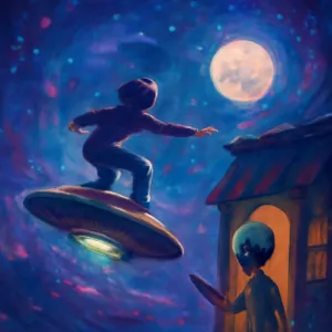 - UFO 위에 올라타서 날아다님: UFO는 보통 미지의 세계, 신비로움, 그리고 초자연적 경험을 상징합니다.