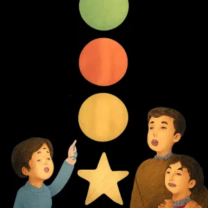초록색, 빨간색, 노란색인 보름달들이 밤하늘에 세로로 일자로 크게 있고 그 아래에는 그림같이 생긴 엄청나게 큰 별이 있었다. 그리고 난 가족들에게 달즐과 별을 보라고 손가락으로 가리켰고 다들 놀랐다. [꿈해몽]