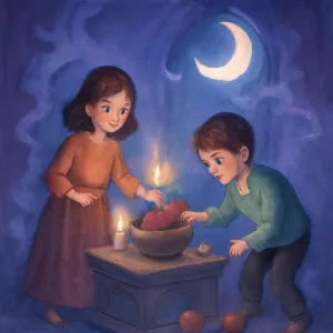 친구가 제단 위의 과일들을 만져서 떨어뜨린 장면은 경계심 부족으로 인한 실수나 중요한 가치를 함부로 대하는 행동을 암시할 수 있습니다.