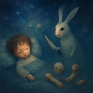 특히 라부부 같은 존재가 나타난 것은 두려움이나 위협의 상징으로 보이며, 칼로 신체 부위를 자르는 장면은 상실감, 분리, 또는 무력감에 대한 깊은 감정을 반영할 수 있습니다.