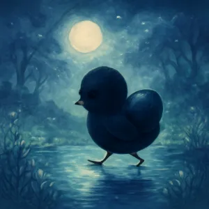 검은 새끼닭과 검은 알, 그리고 숲속 연못이라는 독특한 조합은 매우 상징적인 메시지를 담고 있습니다.