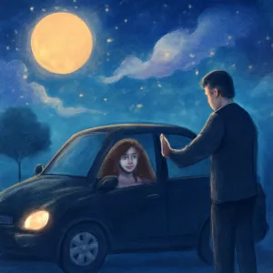 큰딸이 그 승용차 안에 있다는 것은 가족, 책임감, 또는 보호하려는 마음을 암시합니다.