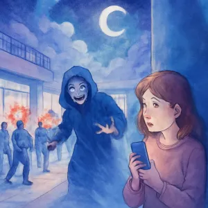 라이브 방송이 갑자기 충격적으로 변하며 사람들의 머리를 터트린다는 잔혹한 장면은 불가피한 위협, 극단적인 갈등, 혹은 변화를 수반하는 긴장감과 두려움을 반영합니다.