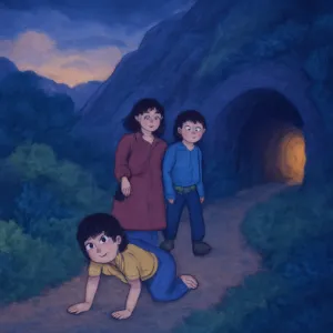 이 꿈에서 여행, 네발로 걷기, 가족과의 분리, 그리고 험난한 산길과 동굴은 깊은 심리적 의미를 담고 있습니다.