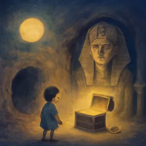 파라오는 고대 이집트 문명의 통치를 대표하며, 이 동상과 그 밑의 글은 당신이 아직 해독하지 못한 개인적, 또는 문화적 지혜와 메시지를 암시합니다.
