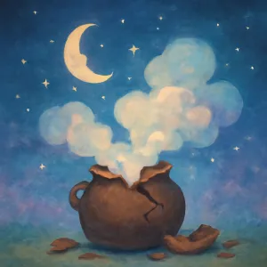 깨진 솥 꿈은 불안한 감정, 갈등, 걱정, 변동성이 내재된 상태를 의미할 수 있습니다.