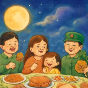 대가족과 음식을 함께 나누는 장면은 당신이 소중히 여기는 가족 유대와 행복한 순간을 반영하며, 군복은 때로는 당신이 직면한 규율, 긴장 혹은 내면의 압박을 나타냅니다.
