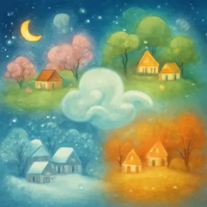꿈에서 사계절이 동시에 공존하는 마을은 인생의 전 과정—탄생, 성숙, 쇠퇴, 그리고 휴식—을 의미하는 매우 심오한 주제로 자주 나타납니다.