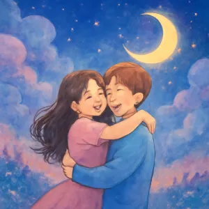 서로 행복하게 웃으며 껴안고 놀고 있는 모습은 즐거움, 자유로움, 그리고 심리적 연결에 대한 갈망을 보여줍니다.