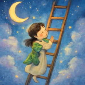 집 안의 다른 층과 사다리 타기라는 과정을 통해 '상승과 도전', '변화와 불안'의 복합적인 내면 상태를 상징합니다.