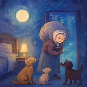 당신은 혼자가 아니며, 내면의 지혜(할머니)와 신뢰할 만한 관계(개들)를 통해 어려움을 극복할 힘이 충분합니다.