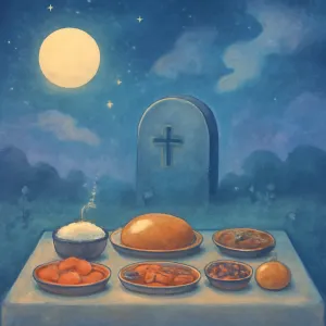 무덤과 음식상이 등장하는 꿈은 매우 강렬한 상징성을 지니고 있으며, 이는 삶과 죽음, 변화, 가족, 그리고 기억과 깊은 관련이 있습니다.