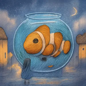 특히 큰 어항 안에 어린 시절 혹은 과거의 상징 물고기가 있다는 점은, 과거의 경험이 현재 정서에 중요한 역할을 하고 있음을 암시합니다.