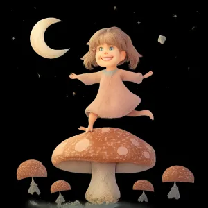 이처럼 버섯과 뛰어다니는 동작이 결합된 꿈은 변화와 활력이 교차하는 공간을 보여줍니다.