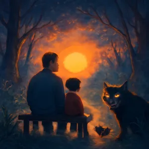 아빠와 나란히 의자에 앉아 노을을 보는 장면은 가족 간의 깊은 유대감, 정서적 안정감, 그리고 인생의 한 시기에 대한 성찰을 나타낼 수 있습니다.