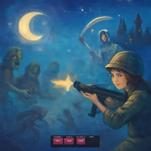 좀비가 낫을 든 여성으로 변하는 역동성은 내면의 ‘적대감’이나 어려움이 예상치 못한 형태로 다가오는 상황을 의미하며, 상대방 혹은 자기 자신의 복합적인 면모를 내포하기도 합니다.