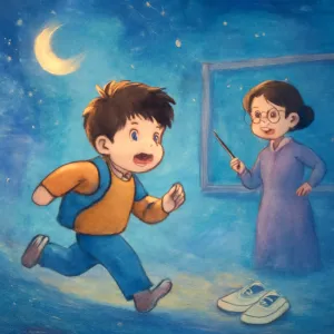 또한 실내화를 안 가져와서 더 혼나는 상황이 추가되어, 일반적인 지각과 벌보다 더욱 불리하고 죄책감을 느끼는 심리를 반영합니다.
