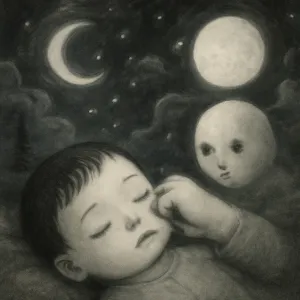 검은 풍경 속에서도 감정의 명료화가 일어나고 있으며, 내면의 순수한 부분(아기)이 당신에게 중요한 메시지나 경고를 보내고 있음을 알 수 있습니다.
