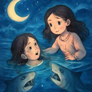 이 꿈에서 '여자가 "이게 진짜 언니야"라고 말하는 장면과 그 여자가 물에 밀려 피라냐 또는 작은 상어에게 물리는 상황은 복합적인 감정과 상황의 상징을 담고 있습니다.