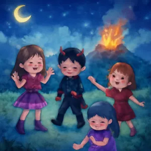 시골집이라는 배경은 안정감, 추억, 혹은 내면의 고요함을 의미하며, 대조적으로 모르는 친구들과 함께 하는 활기찬 케이팝 데몬헌터스 분장 무대는 사회적 교류, 창의성, 그리고 자기 표현 욕구를 나타냅니다.