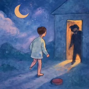 도망치고 집에 도착했음에도 문밖에 그 사람이 있는 상황: ‘안전지대’라고 생각하는 곳까지도 위협에서 벗어나지 못하는 불안한 심리를 나타냅니다.