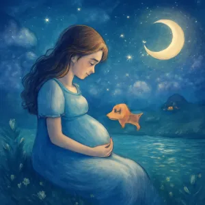임산부가 강가에 있는 모습을 꿈꾸고, 그 근처에서 작은 물고기를 조심스럽게 옮겨 집으로 돌보는 장면은 매우 특별한 상징을 담고 있습니다.