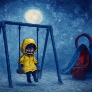 놀이터는 일반적으로 어린 시절, 순수함, 즐거움, 성장을 상징하지만, 꿈에서의 어두움과 적막한 분위기, 그리고 피가 묻은 아이와 엄마의 등장은 보다 복잡하고 내면적인 감정을 암시합니다.