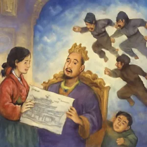 당신이 왕에게 건물 설계도를 주는 장면은 자신의 아이디어, 창의력, 혹은 계획을 인정받고 싶은 욕구를 반영할 수 있습니다.