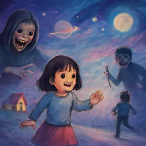 하지만 그곳에서 친구가 먼저 떠나고, 무서운 인물이 웃으며 다가오는 상황은 불안과 고립감, 배신 혹은 보호받지 못하는 느낌을 반영합니다.