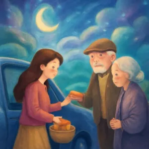 노부부에게 귤을 주는 행동은 친절, 나눔, 그리고 감사를 표현하며 긍정적인 인간관계를 의미합니다.