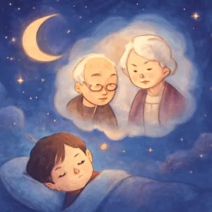 할머니 할아버지와 같이 가까운 가족이 나오는 꿈은 가족 관계, 후회, 감사함, 또는 미해결 감정을 다루는 경우가 많습니다.