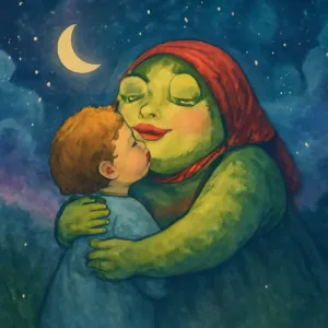 꿈에서 등장한 뚱뚱한 체형의 무당개구리 여인과 그녀가 당신에게 “아가 이제부터 내가 너의 엄마란다”라고 말하며 포근한 포옹과 볼에 입맞춤을 하는 장면은 깊은 내면의 정서와 관계, 그리고 보호와 치유의 메시지를 전해줍니다.